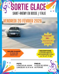 Le Team Trajectoire te propose une journée Glace à Saint-Rhémy en Bosse (I) avec notre partenaire ACD Motorsport le vendredi 20 février 2026.